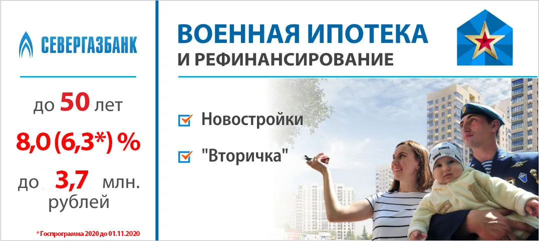Подробные условия, калькулятор и онлайн заявка на кредит в разделе "Военная ипотека в Севергазбанке"