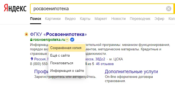 Если вам требуется посмотреть какую-либо информацию с сайта Учреждения, это возможно и в период его недоступности. Поисковые сервисы хранят кэш страниц сайтов. Увидеть сохраненную копию можно, например, следующим образом: